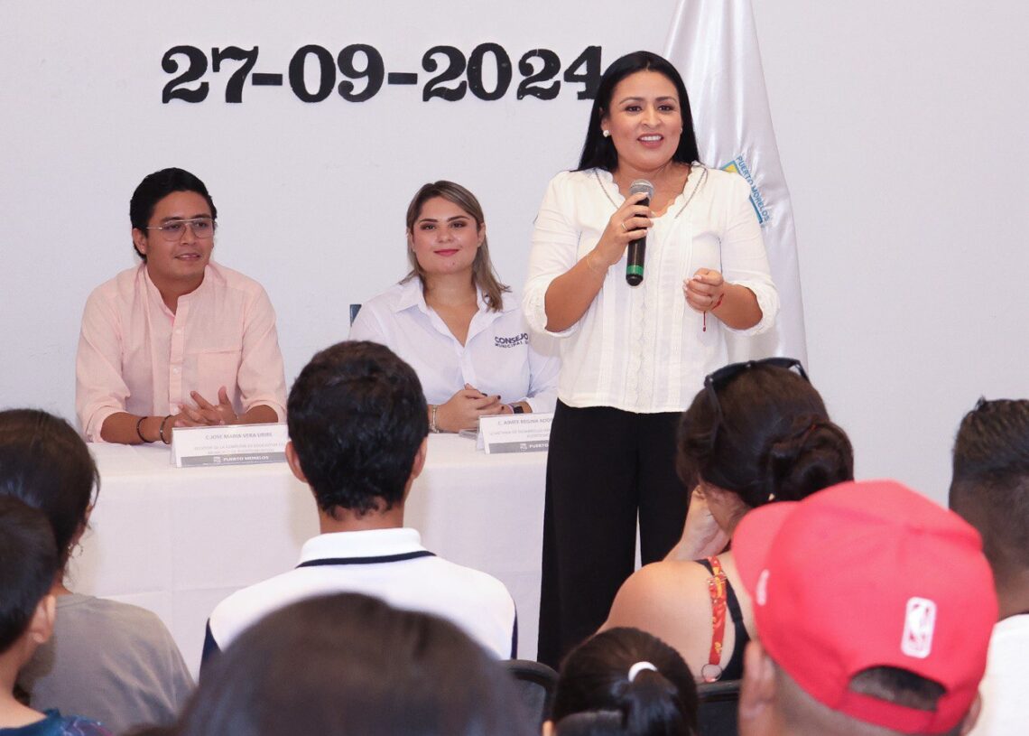 Puerto Morelos, Quintana Roo, 27 de septiembre de 2024.– La presidenta municipal Blanca Merari Tziu Muñoz encabezó hoy el pago de becas municipales “Avanzando Juntos” a 90 niñas y niñas de educación básica de esta cabecera municipal, correspondientes al ciclo escolar 2023-2024, en lo que consideró un “cierre con broche de oro” de la administración 2021-2024.