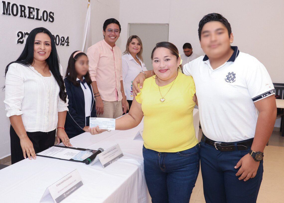 Hoy premiamos su esfuerzo con el pago de esta beca, señaló la Presidenta Municipal. También es un reconocimiento a la dedicación de sus padres y representa un importante apoyo a la economía de las familias portomorelenses.