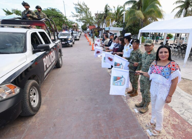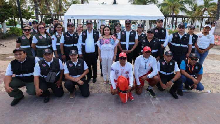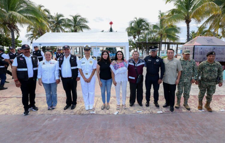 *Frente a la playa de la Ventana al Mar, la presidenta municipal dio salida a las corporaciones encargadas de brindar seguridad y atención a turistas y residentes durante esta temporada vacacional.