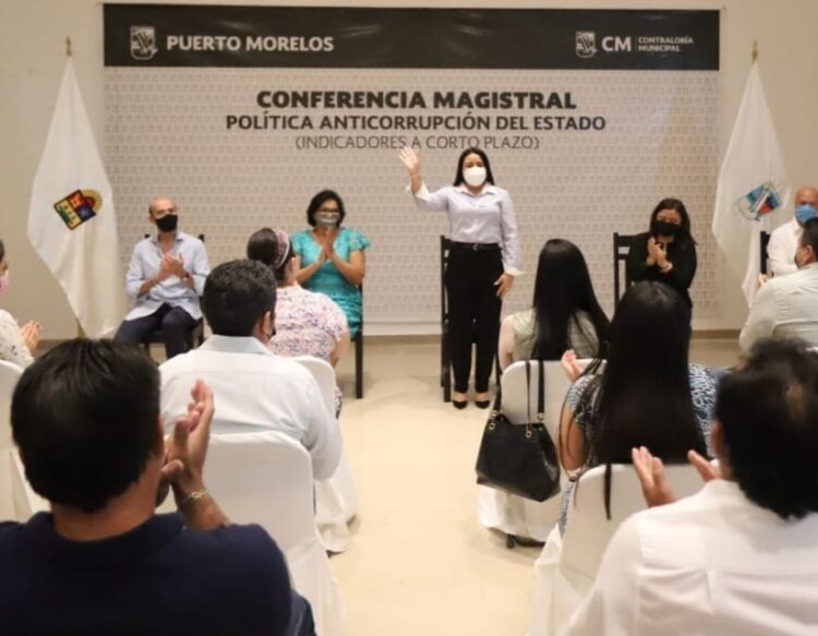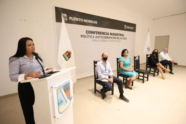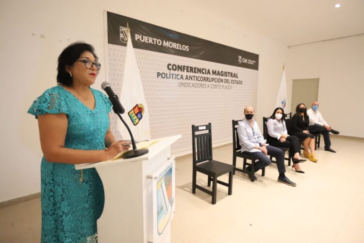 Puerto Morelos, Quintana Roo, 29 de noviembre de 2021.- La corrupción es un mal que nos afecta a todos, por lo que tenemos que hacerle frente con honestidad si queremos avanzar en mejorar las instituciones, remarcó la presidenta municipal Blanca Merari Tziu Muñoz, al inaugurar la Conferencia Magistral, Política Anticorrupción del Estado (indicadores a corto plazo), impartida por la fiscal Anticorrupción de Quintana Roo, Rosaura Villanueva Arzápalo.