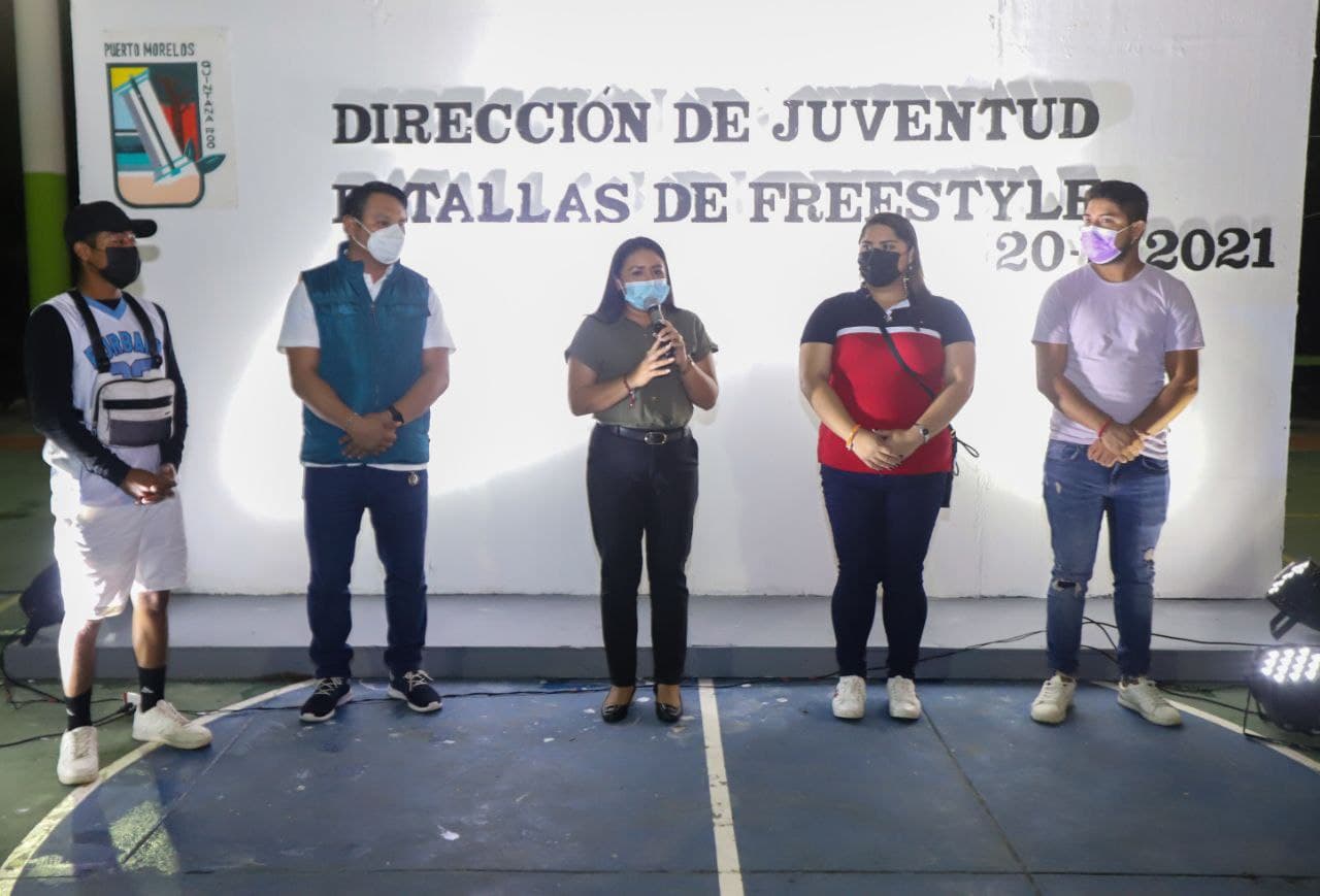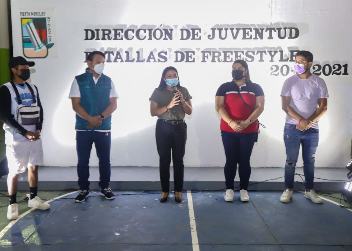 Puerto Morelos, Quintana Roo, 23 de noviembre de 2021.- La presidenta municipal Blanca Merari Tziu Muñoz destacó el talento de los jóvenes de Puerto Morelos, como fue el caso de quienes participaron en el encuentro “Freestyle”, que se organizó en el domo deportivo de la colonia Zetina Gasca.