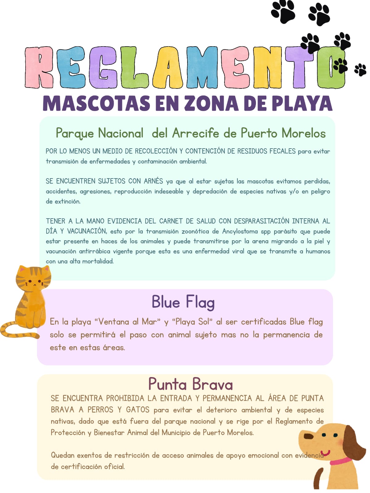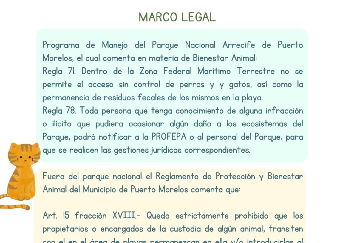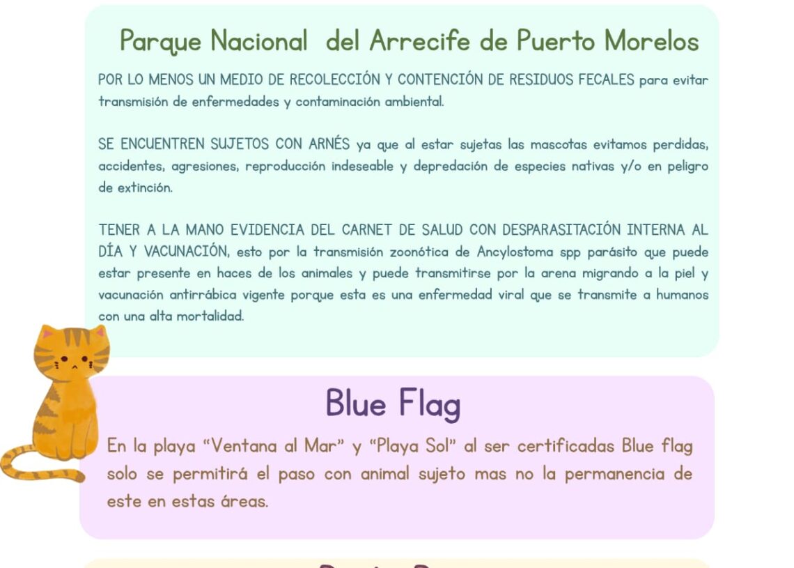 “El propietario del animal también debe portar fotografía o copia del carnet sanitario para ver, entre otras cosas, que estén desparasitados, porque hay enfermedades zoonóticas que se pasan a los humanos que pisan heces de los animales. Seguiremos trabajando en el tema en las siguientes semanas, en las que tendremos reuniones con instancias como Zofemat, Conanp y Medio Ambiente”, subrayó.