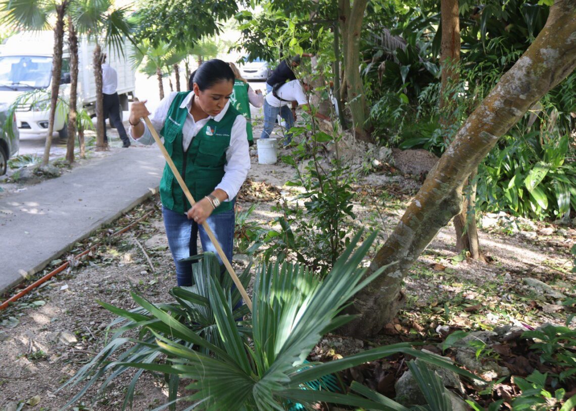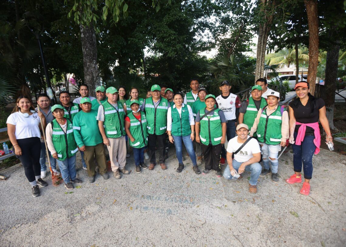 Acompañada por personal de la Dirección General de Servicios Públicos y funcionarios de diversas áreas del gobierno local, la Presidenta Municipal señaló que el objetivo de estas labores, que son de manera permanente, es embellecer todos los espacios públicos de Puerto Morelos.