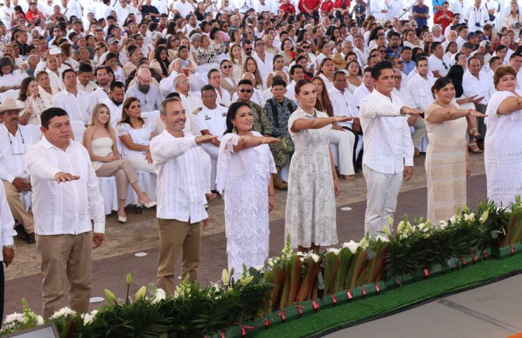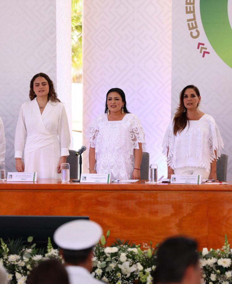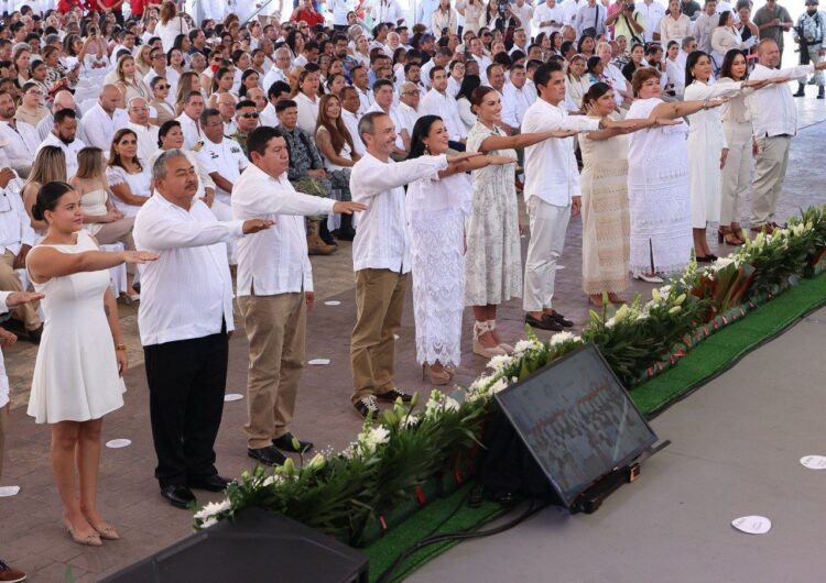 En la ceremonia, efectuada en el Parque Fundadores del Casco Antiguo, a la que asistieron diputados locales, federales, senadores, presidentes municipales, ex gobernadores, funcionarios y representantes de las fuerzas armadas, la Presidenta Municipal agradeció el respaldo de la titular del Ejecutivo del Estado y la visita de la presidenta de México Claudia Sheinbaum Pardo, primera mandataria federal en funciones que visita Puerto Morelos, y reconoció a las y los fundadores, personas adultas mayores y a la ciudadanía en general por su contribución al fortalecimiento del municipio.