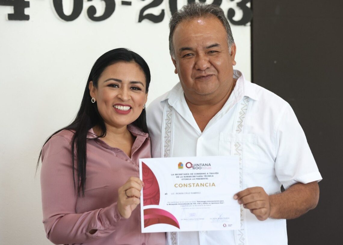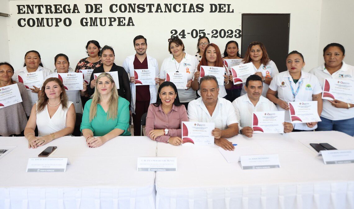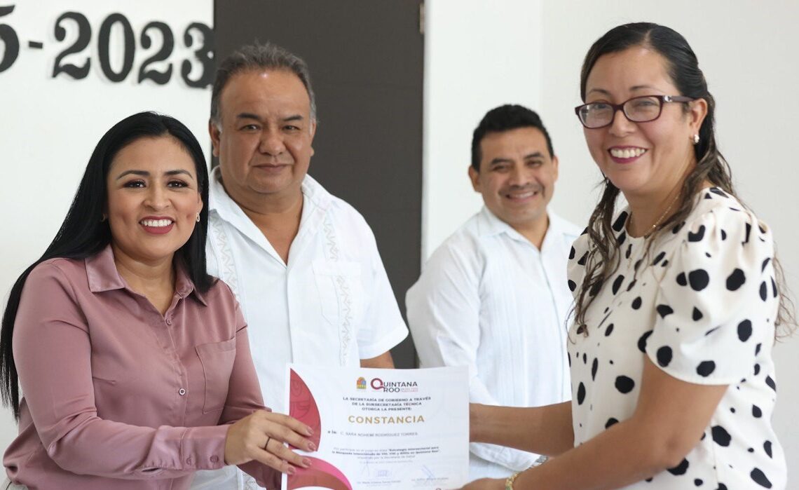 Puerto Morelos, Quintana Roo, 24 de mayo de 2023.— La presidenta municipal Blanca Merari Tziu Muñoz entregó hoy constancias a 17 de 25 servidores públicos que participaron en el curso “Estrategia intersectorial para la búsqueda de intencionada de VIH, VHC y sífilis en Quintana Roo”, impartido por la Subsecretaría Técnica de la Secretaría de Gobierno.
