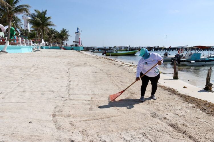 Por otro lado, dijo que, en coordinación con el Gobierno del Estado y la Secretaría de Marina se trabaja para contener y limpiar el sargazo que año con año recala en las playas de Puerto Morelos, tarea en la que forman equipo colaboradores y colaboradoras municipales, personal de la Sema, marinos y voluntarios.