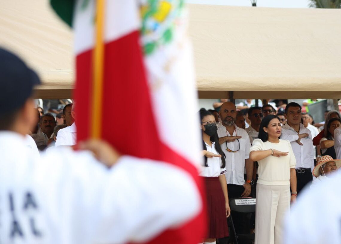 Leona Vicario, Puerto Morelos, Quintana Roo, 7 de marzo de 2023.- La presidenta municipal Blanca Merari Tziu Muñoz encabezó hoy la ceremonia por el LXXXVII aniversario del cambio de nombre de Hacienda Santa María a Leona Vicario, como reconocimiento a la heroína de la Independencia y esposa de Andrés Quintana Roo.