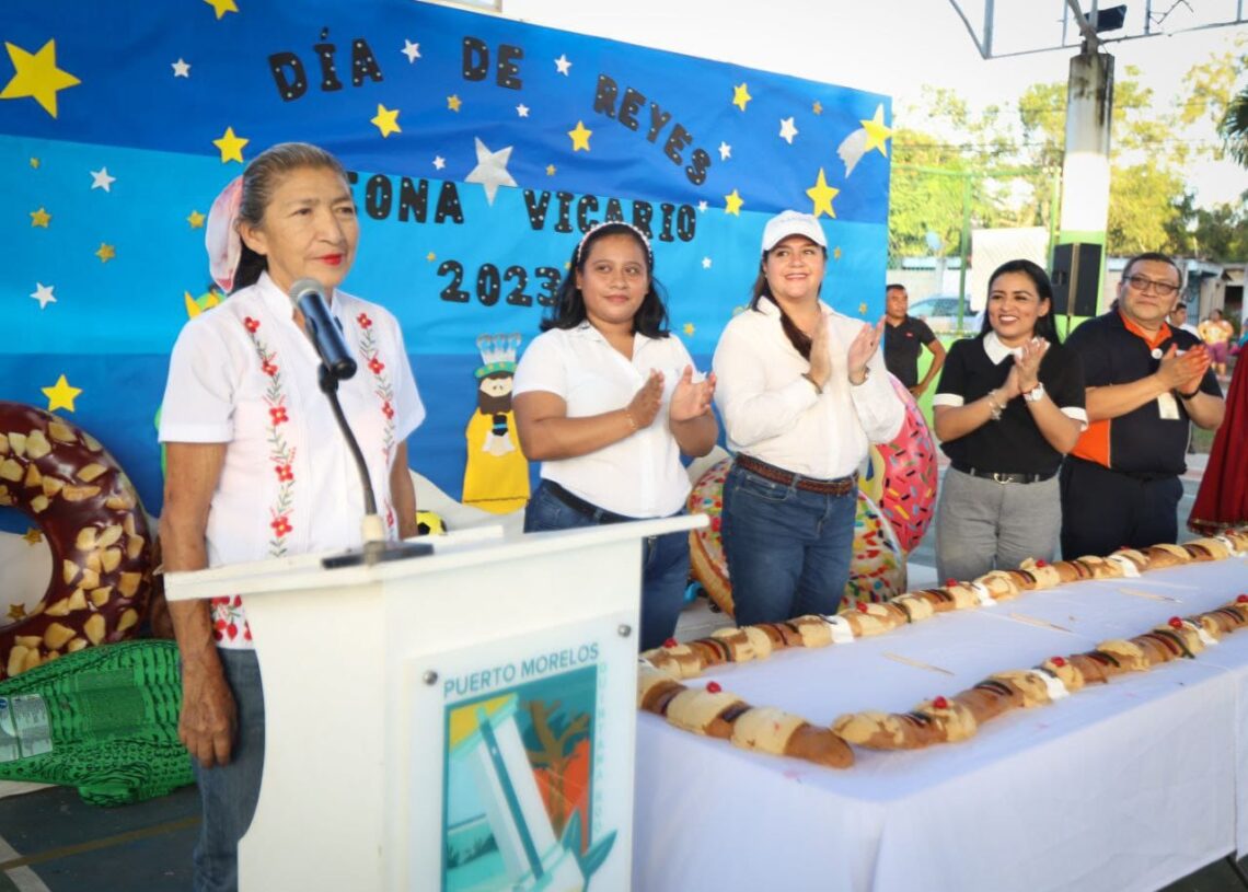 En el evento, en el que estuvieron presentes los 3 Reyes Magos, participaron también Maura Teodora Cordero Silva, presidenta del DIF municipal; María José Cámara Kantun, coordinadora de la institución en esta comunidad; José Emeterio Díaz Almazán, en representación de tiendas Chedraui en Puerto Morelos y Blanca Guevara, directora corporativa de Capital Humano de Fundación Karisma.