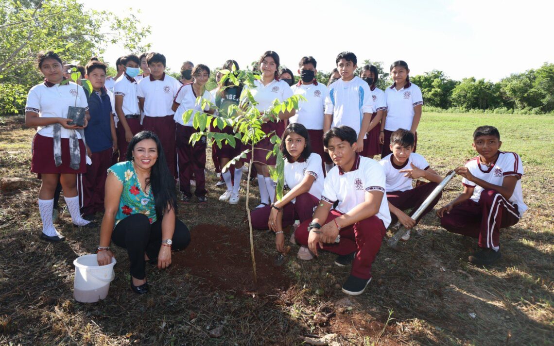 Acompañada por el director del plantel, Luis Fernando Durán Pech, y 30 estudiantes, la Alcaldesa destacó la importancia de mantener y recuperar la masa forestal, que es vital para la vida y el correcto funcionamiento de los diversos ecosistemas.