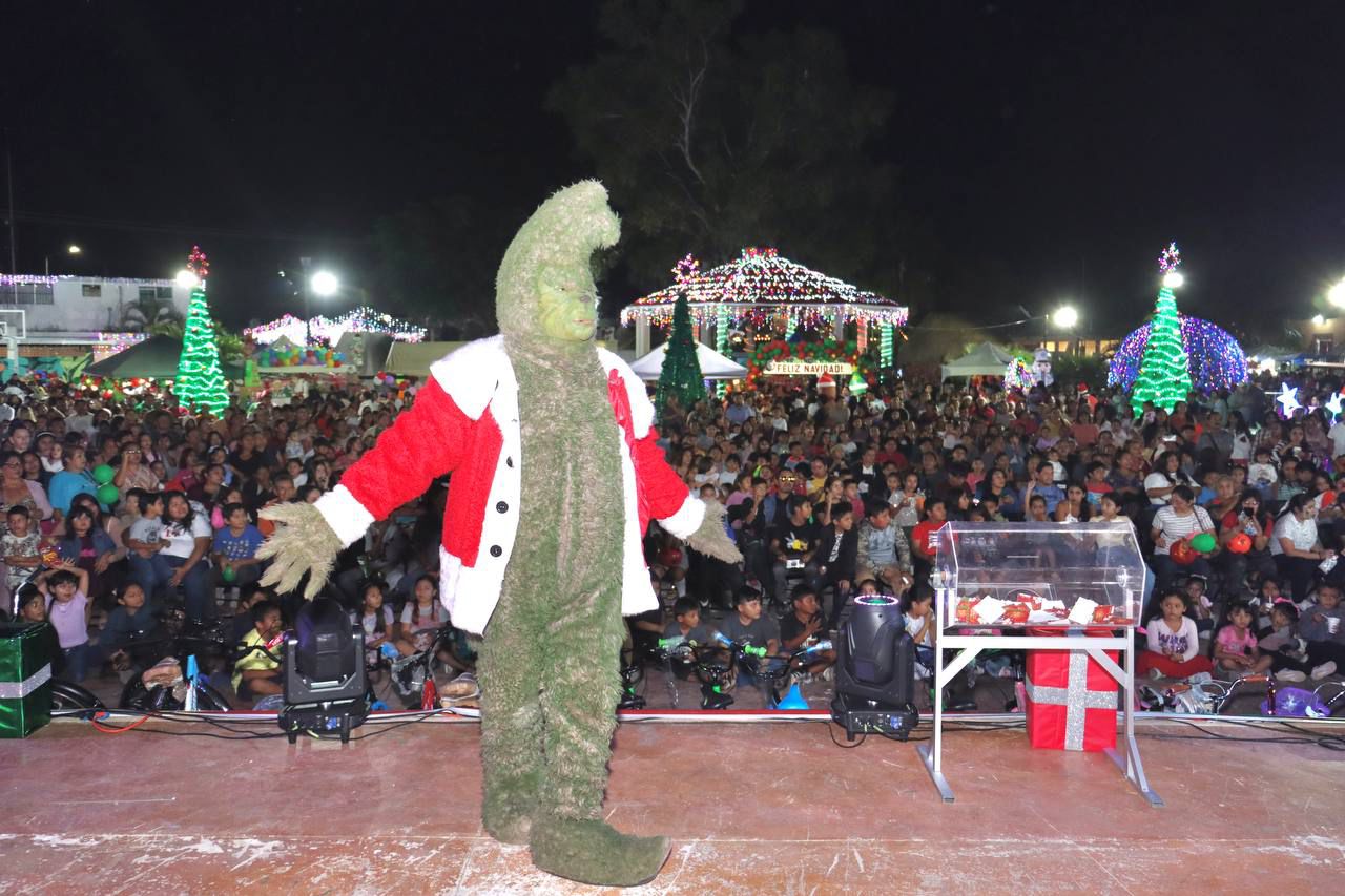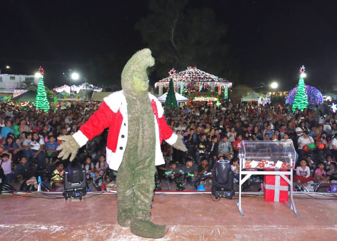 Las niñas y niños también disfrutaron de la presencia de botargas como la galleta de jengibre, Santa Claus, el Grinch, Stitch y renos, entre otros personajes de películas infantiles.