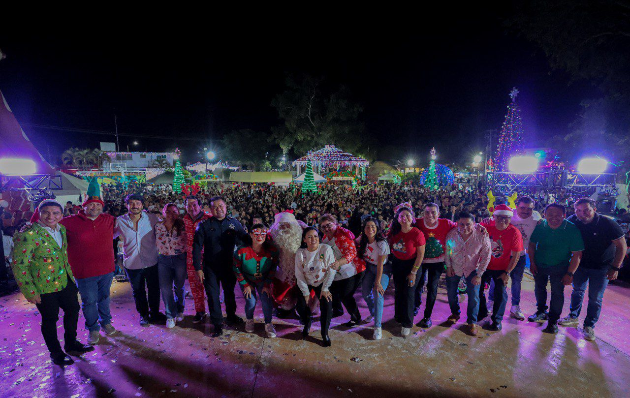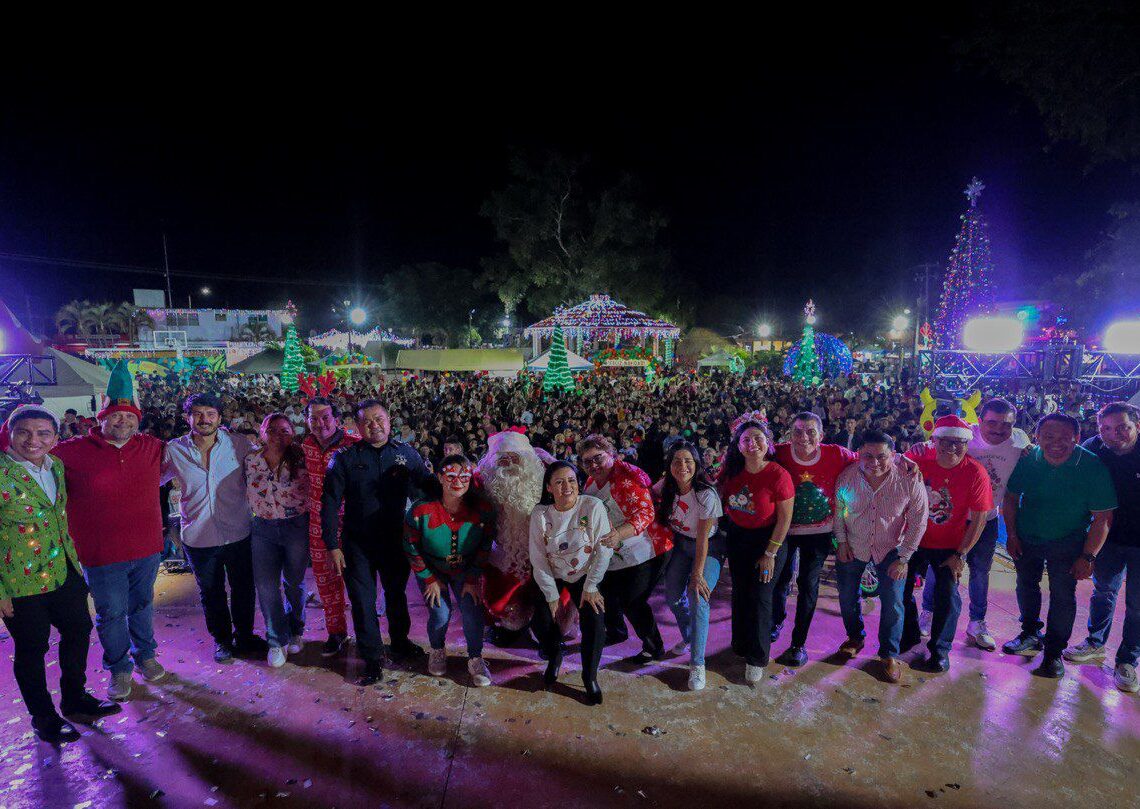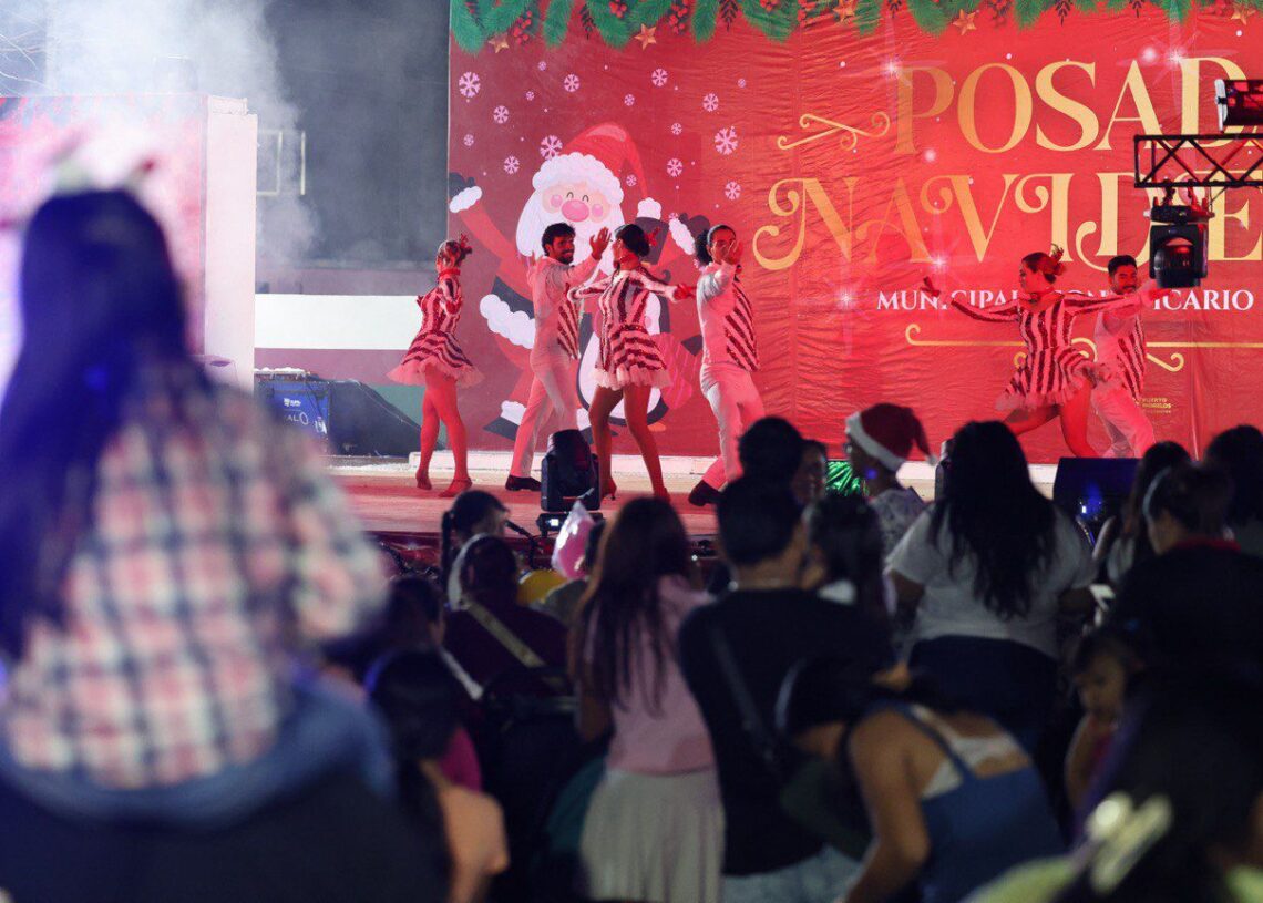 Leona Vicario, Puerto Morelos, Quintana Roo, 16 de diciembre de 2025.— La presidenta municipal Blanca Merari Tziu Muñoz encabezó esta noche la Posada Navideña Leona Vicario 2025, organizada por el Ayuntamiento de Puerto Morelos, en la que más de 800 niñas y niños de esta delegación vivieron una jornada llena de alegría, acompañados por cerca de mil 200 adolescentes, madres y padres de familia.