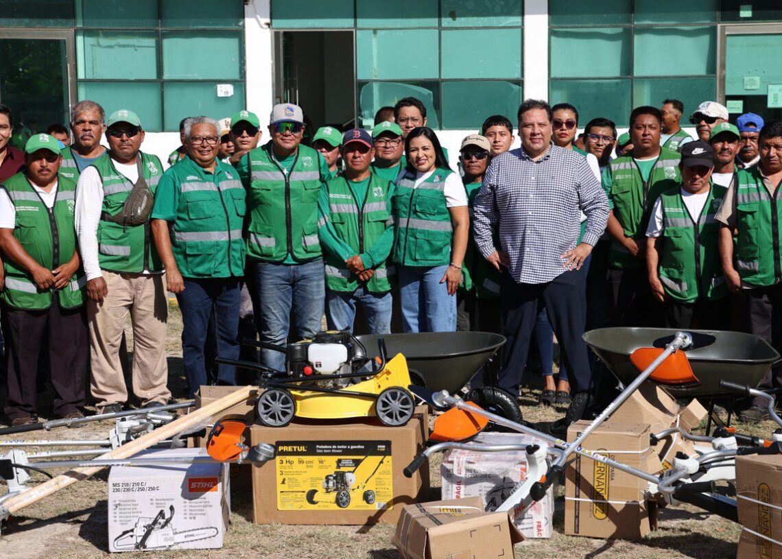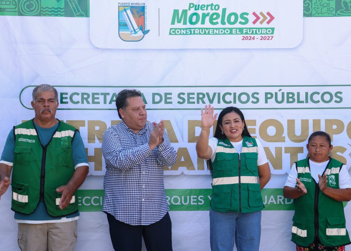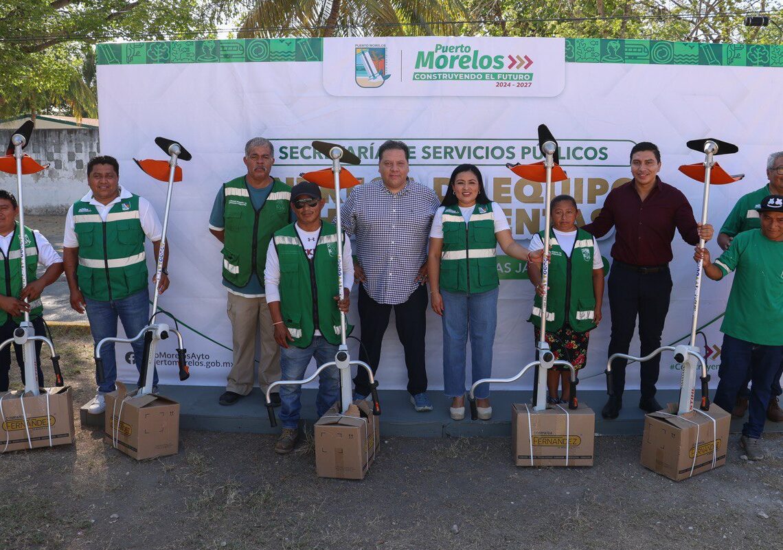 Puerto Morelos, Quintana Roo, 19 de mayo de 2025.— En lo que consideró “un acto de justicia social” para quienes trabajan en las calles, bajo el intenso Sol, no en oficinas con aire acondicionado, la presidenta municipal Blanca Merari Tziu Muñoz hizo hoy entrega de herramientar y equipos para el área de Parques y Áreas Jardinadas de la Secretaría de Servicios Públicos.