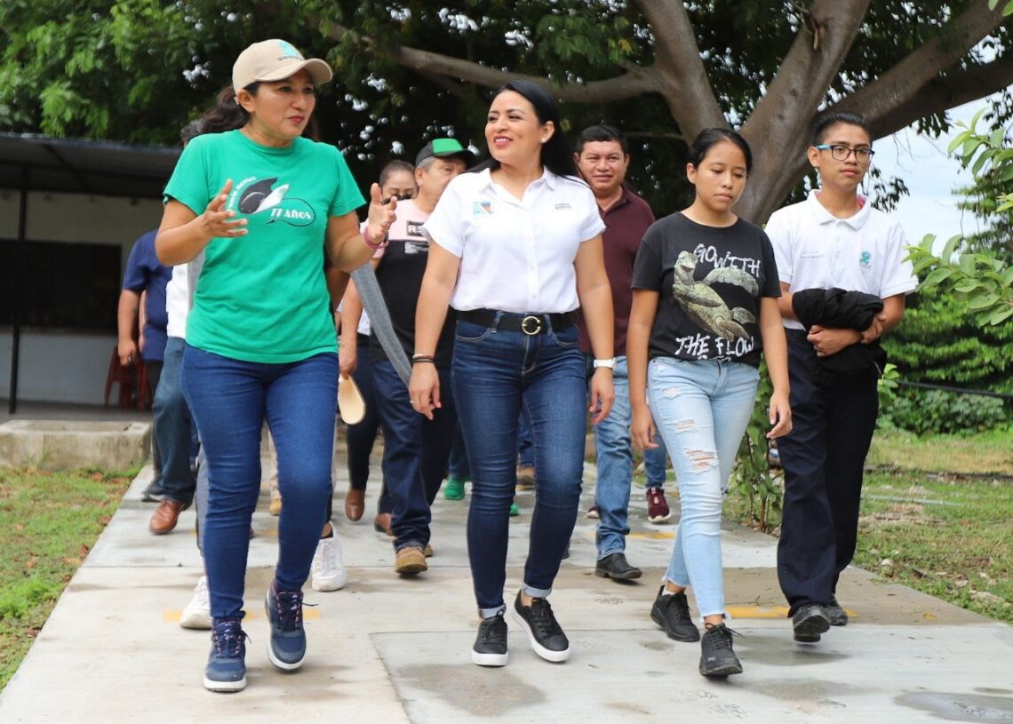 “Me complace ser parte de iniciativas como esta jornada en la que participamos de manera activa, para recolectar y levantar la basura que se genera en el plantel, así como el chapeo de las áreas verdes”, comentó la Alcaldesa, quien realizó un recorrido por las instalaciones, acompañada por la directora del Colegio, Olga Lidia Gómez Novelo; el secretario municipal de Desarrollo Humano, Marco Antonio Betancourt Canul; y el director general de Educación, Mario Humberto Alvarado Villarreal.