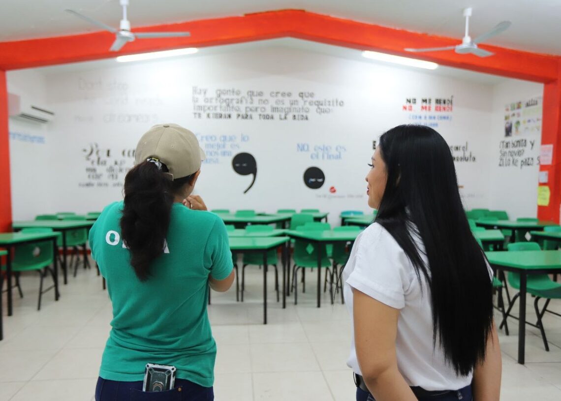 Durante la jornada, Blanca Merari Tziu recorrió salones de clases, conoció los proyectos de crecimiento de la escuela y plantó arbolitos de limones, en compañía de Olga Gómez y alumnos destacados.