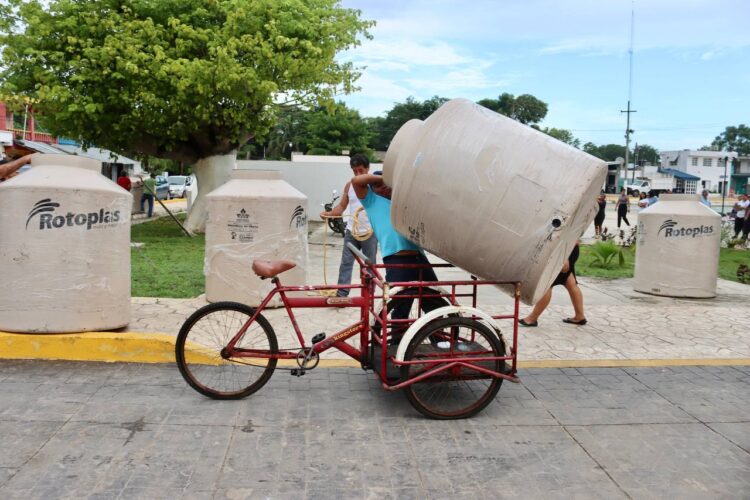 Leona Vicario, Puerto Morelos, Quintana Roo, 24 de agosto de 2023.— A un año de que la presidenta municipal Blanca Merari Tziu Muñoz firmó un convenio con la Congregación María Trinitaria con el objetivo de llevar bienestar a familias en condición de vulnerabilidad del municipio, hoy entregó en esta delegación 34 tinacos de diferente capacidad.