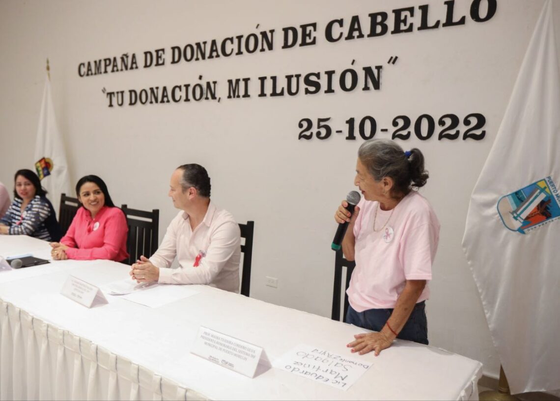 Puerto Morelos, Quintana Roo, 25 de octubre de 2022.- En el marco de las acciones del Mes Rosa, en el que se impulsa la prevención y lucha contra el cáncer de mama, el gobierno de la presidenta municipal Blanca Merari Tziu Muñoz, a través del Sistema para el Desarrollo Integral de la Familia (DIF), llevó a cabo el programa “Tu donación, mi ilusión”, con el objetivo de entregar al CRIT Quintana Roo cabello donado por mujeres portomorelenses, para pelucas oncológicas.