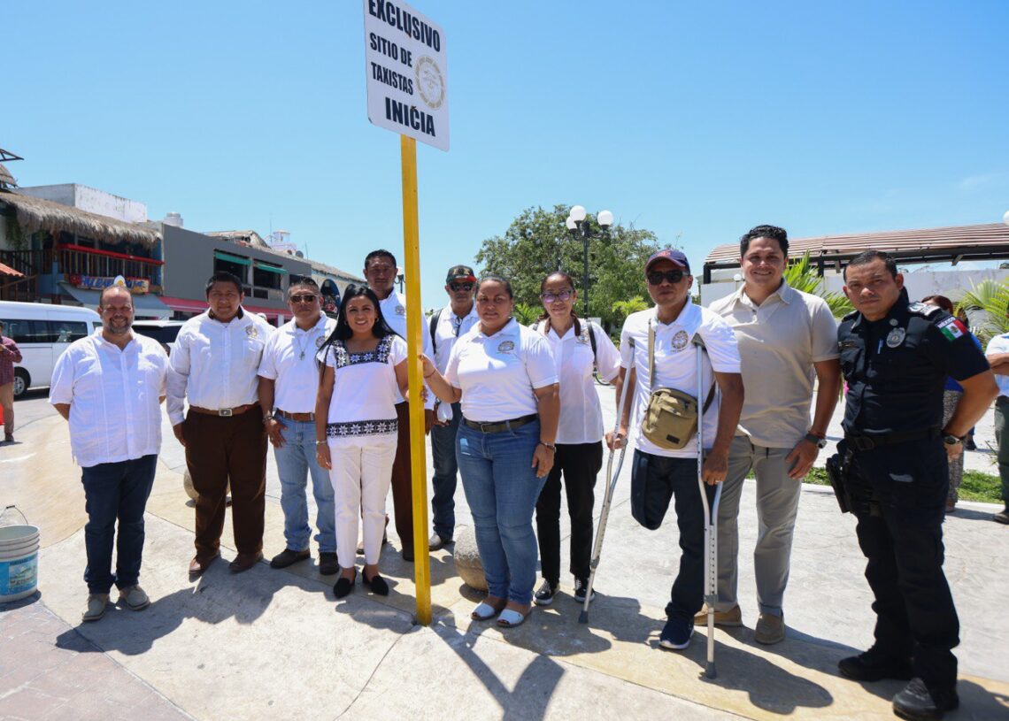 Como parte del acto protocolario, la Presienta Municipal y la dirigente de los taxistas, quien agradeció al gobierno local por hacer realidad esta gestión, colocaron el señalamiento que indica el inicio del sitio de taxis, en un lugar privilegiado de la zona turística de Puerto Morelos.