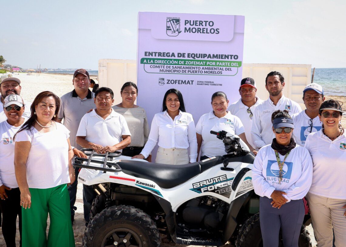 Puerto Morelos, Quintana Roo, 23 de agosto de 2024.– La presidenta municipal Blanca Merari Tziu Muñoz entregó hoy a la Dirección de la Zona Federal Marítimo Terrestre (Zofemat) equipamiento para apoyar las labores diarias de limpieza de playas, a fin de mantenerlas en condiciones óptimas y libres de sargazo.