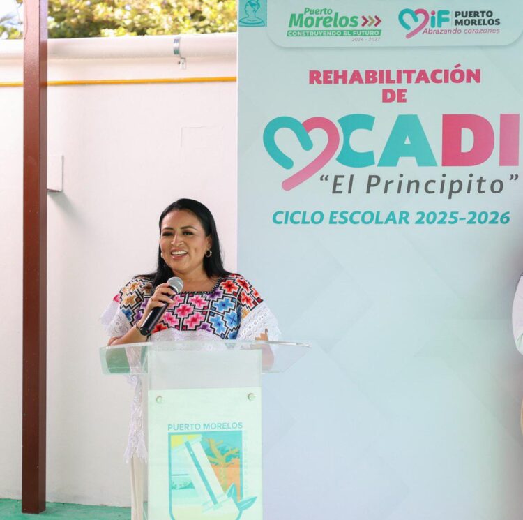 Puerto Morelos, Quintana Roo, 15 de septiembre de 2025.— La presidenta municipal Blanca Merari Tziu Muñoz entregó hoy la rehabilitación y el equipamiento del Centro Asistencial de Desarrollo Infantil (CADI) “El Principito” y dio inicio al ciclo escolar 2025–2026 en esta institución, donde se forman 70 niñas y niños portomorelenses.