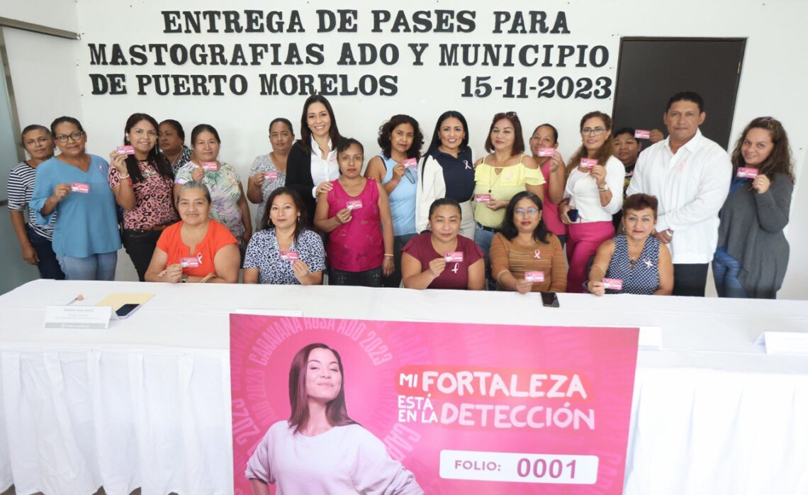 Puerto Morelos, Quintana Roo, 15 de noviembre de 2023.— Al hacer entrega de 20 pases para estudios de mastografía a igual número de mujeres de esta cabecera municipal y la delegación de Leona Vicario, la presidenta municipal Blanca Merari Tziu Muñoz reiteró que la detección temprana del cáncer aumenta significativamente las posibilidades de un tratamiento exitoso y, por tanto, de supervivencia.