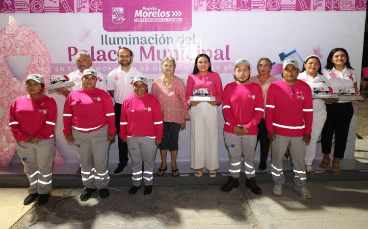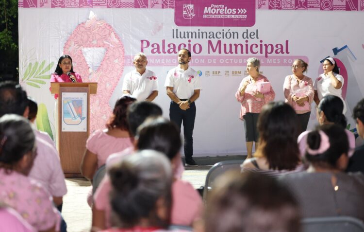 Puerto Morelos, Quintana Roo, 8 de octubre de 2025.– “La prevención siempre será la mejor medicina para mantener la salud, y la autoexploración, la mejor forma de lograr una detección temprana que puede salvar vidas”, afirmó la presidenta Blanca Merari Tziu Muñoz al encabezar el Encendido Rosa del Palacio Municipal, dentro de la campaña “Que no SENOS olvide”, con motivo del Mes Rosa de lucha contra el cáncer de mama.