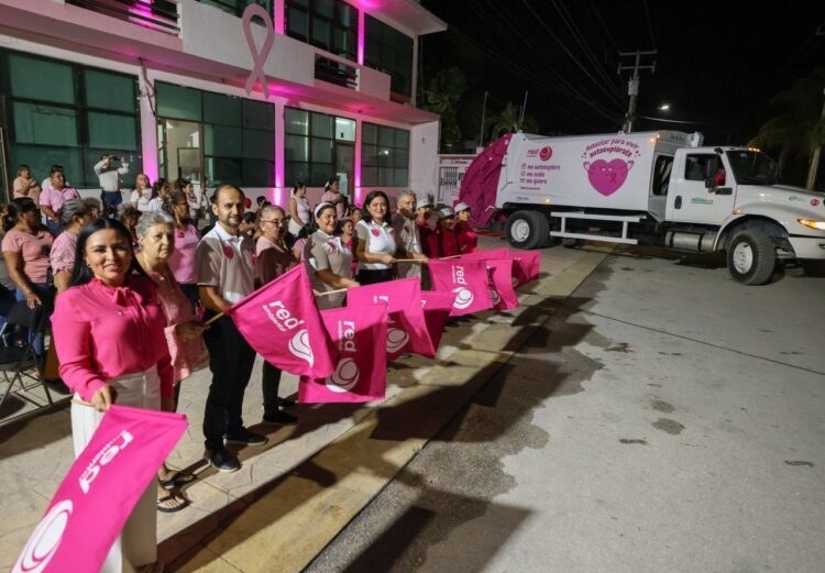 En el marco de la campaña “Que no SENOS olvide”, la presidenta municipal, junto con el Sistema DIF Puerto Morelos y la empresa Red Ambiental, benefició a 11 mujeres que han pasado por un proceso de mastectomía, además de encabezar el encendido rosa del Palacio Municipal.