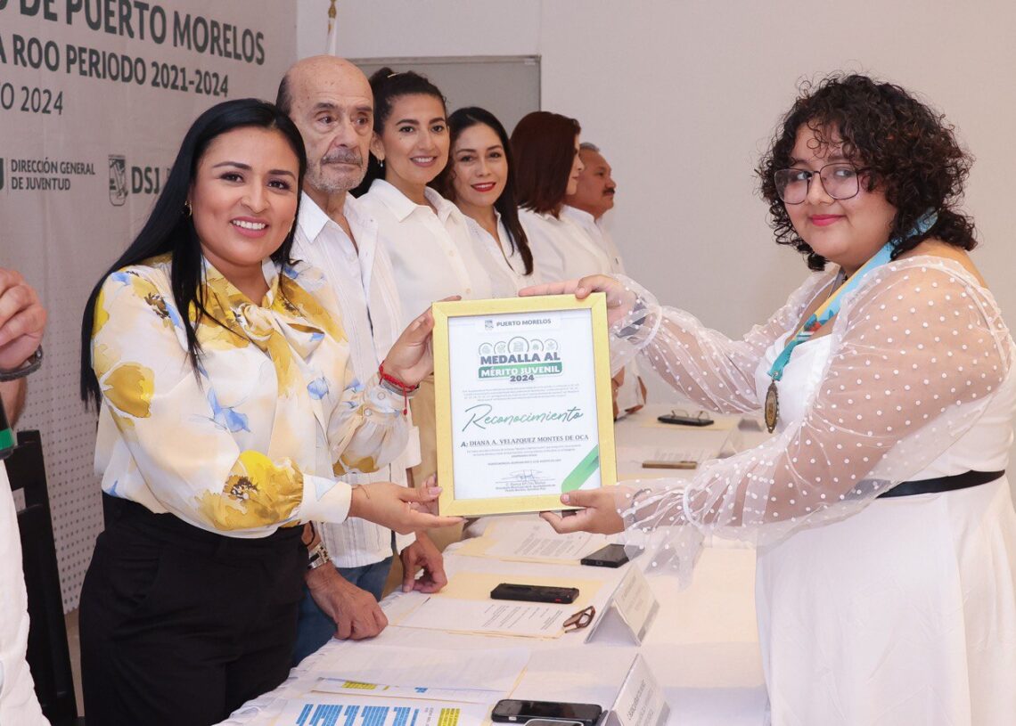 “La Medalla al Mérito Juvenil es una plataforma para visibilizar y honrar las acciones sobresalientes de nuestros jóvenes en cinco categorías. Los premiamos por su esfuerzo y dedicación, con lo cual nos demuestran que Puerto Morelos cuenta con su compromiso”, señaló la Presidenta Municipal.