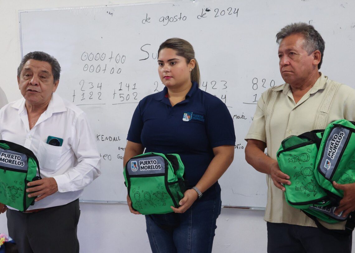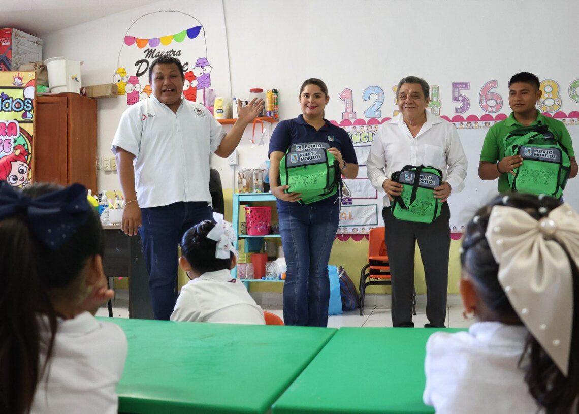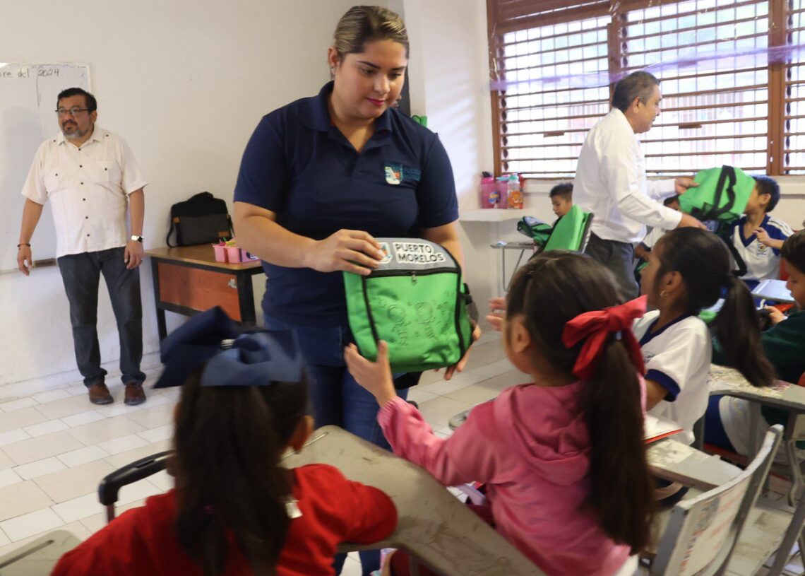 Leona Vicario, Puerto Morelos, 2 de septiembre de 2024.– Conforme al compromiso de la presidenta municipal Blanca Merari Tziu Muñoz, este lunes continuó la entrega de kits de loncheras y termos entre los alumnos de preescolar y primaria del municipio de Puerto Morelos.