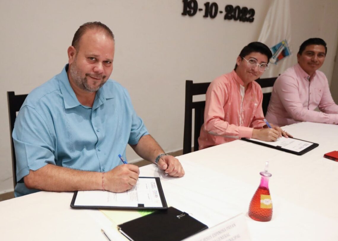 Puerto Morelos, Quintana Roo, 19 de octubre de 2022.— El gobierno de Puerto Morelos lleva a cabo acciones contundentes para apoyar a las mujeres que lamentablemente han transitado por el cáncer de mama, enfermedad que mantiene alta incidencia de mortalidad, señaló el secretario general del Ayuntamiento, José de Jesús Espinosa Payán, durante la firma del convenio de colaboración con Luna A.C. a la que acudió en representación de la presidenta municipal Blanca Merari Tziu Muñoz.
