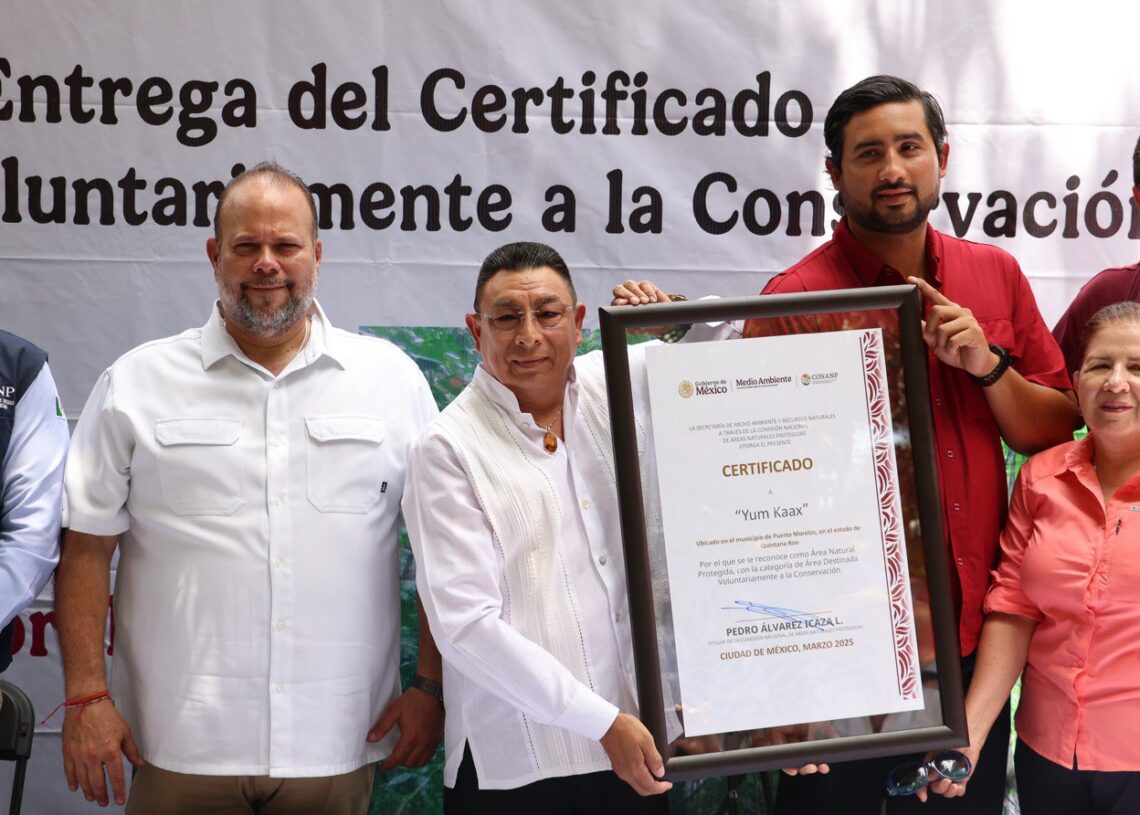 Puerto Morelos, Quintana Roo, 24 de abril de 2025.– “Puerto Morelos demuestra una vez más su vocación como municipio verde, destinado a la protección y conservación de la naturaleza, al concretarse la certificación del Área Natural Protegida Yum Kaax, afirmó el secretario general del Ayuntamiento José de Jesús Espinosa Payán, a nombre la presidenta municipal Blanca Merari Tziu Muñoz.