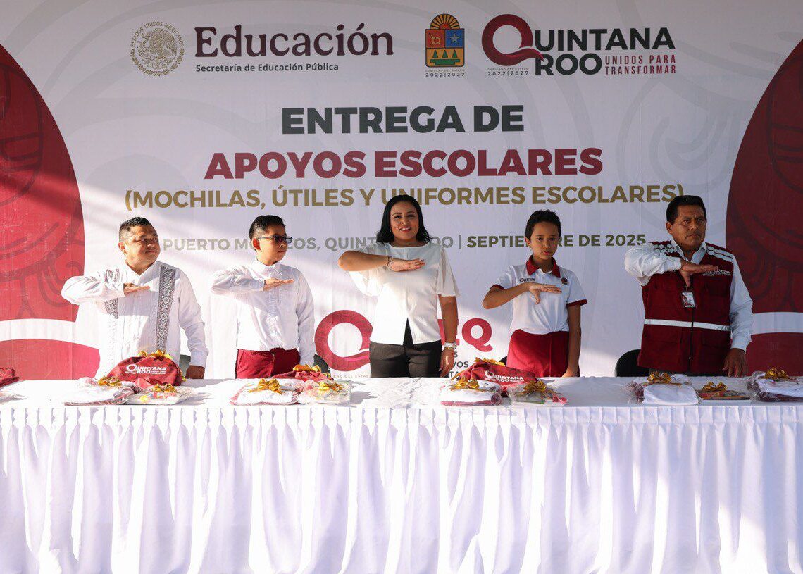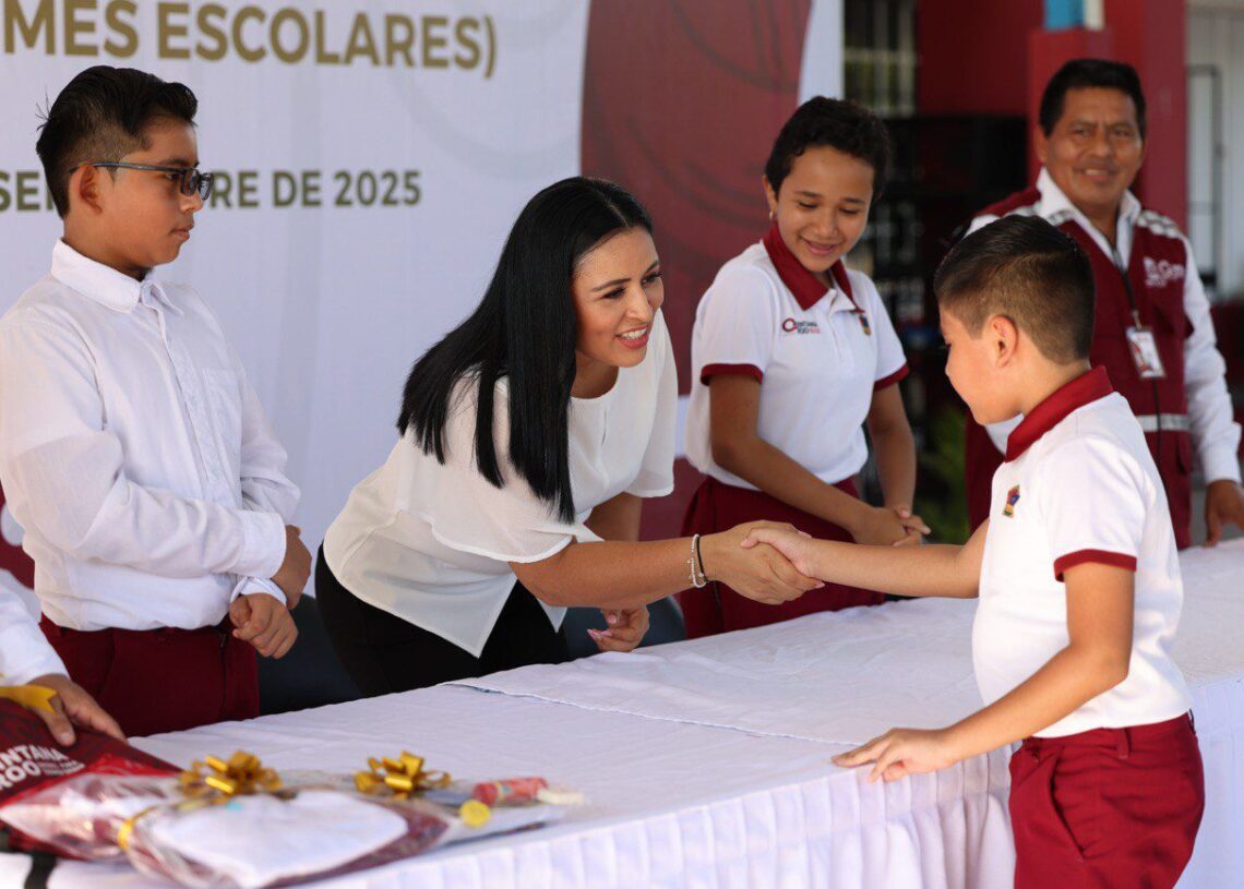 En la ceremonia, la Presidenta Municipal agradeció a la gobernadora Mara Lezama y su impulso educativo para los estudiantes quintanarroenses y destacó que su administración no descansa para avanzar en la transformación, que abarca todos los ámbitos, y comentó que con la entrega de esos paquetes escolares se frena la deserción escolar y se fomentan la igualdad de oportunidades, la no discriminación y el derecho universal a la educación.