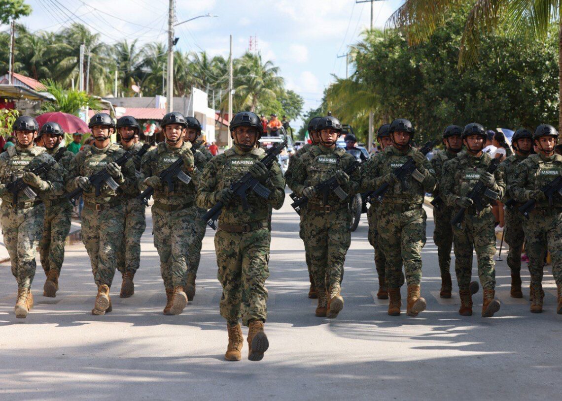 Detrás de los cerca de 1,000 estudiantes vinieron la Secretaría Municipal de Seguridad Pública; Guardia Nacional y Marina.