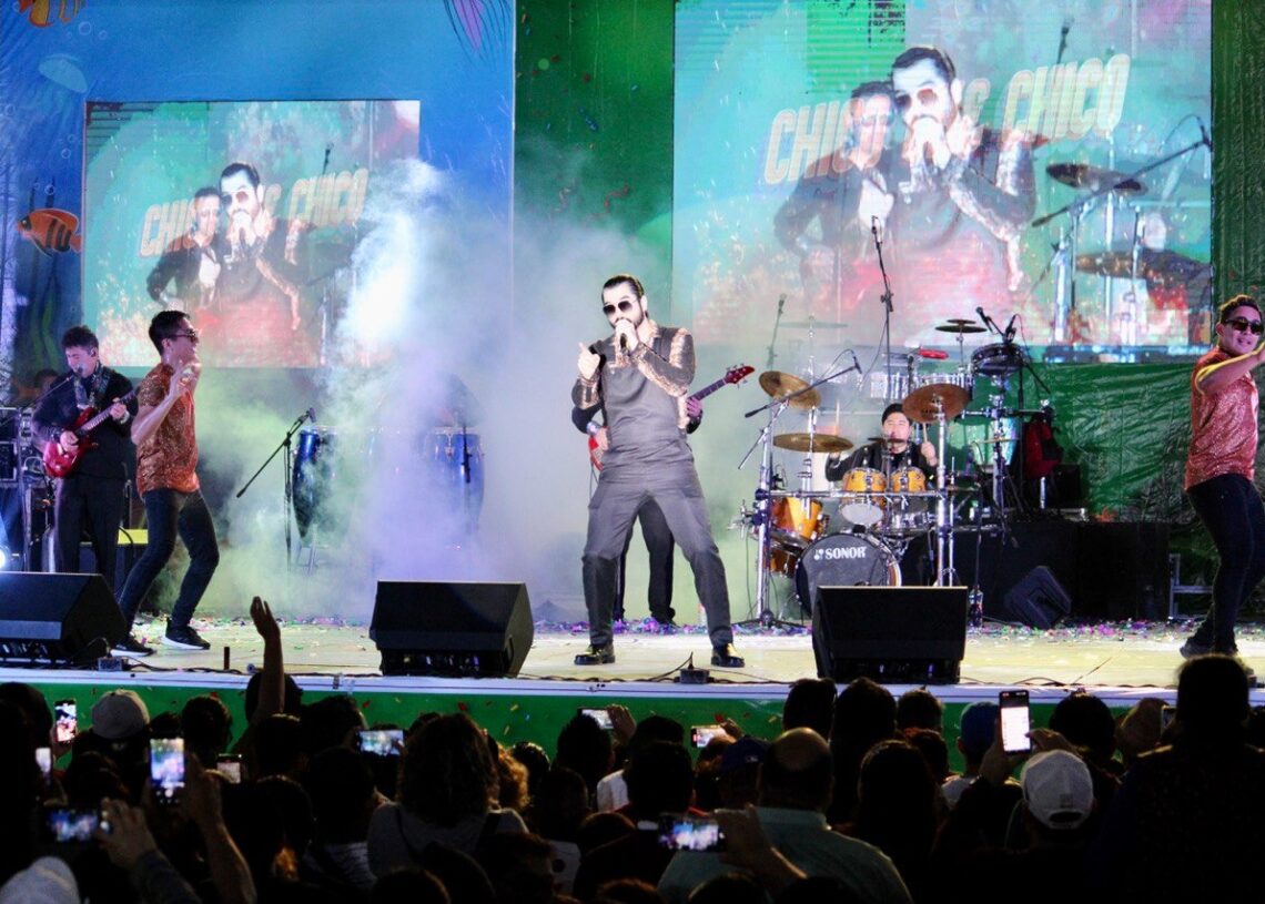 Tocó el turno de subir al escenario a Chico Che Chico, quien con una combinación de ritmos y sonidos tropicales puso a bailar a los portomorelenses. No pudieron faltar canciones como “¿Quén pompó?”, “Macorina”, “¿Dónde te agarró el temblor?” y “Las pelotas”, que fueron coreadas por el público que se le entregó de manera incondicional.