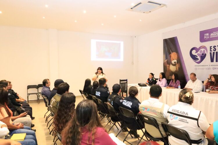 Puerto Morelos, Quintana Roo, 23 de agosto de 2025. — A fin de cumplir la Estrategia Violeta que impulsa la presidenta municipal Blanca Merari Tziu Muñoz en el marco de la Palabra Cumplida, 50 servidoras y servidores públicos municipales participaron en la “Capacitación Interinstitucional sobre Derechos Humanos”.