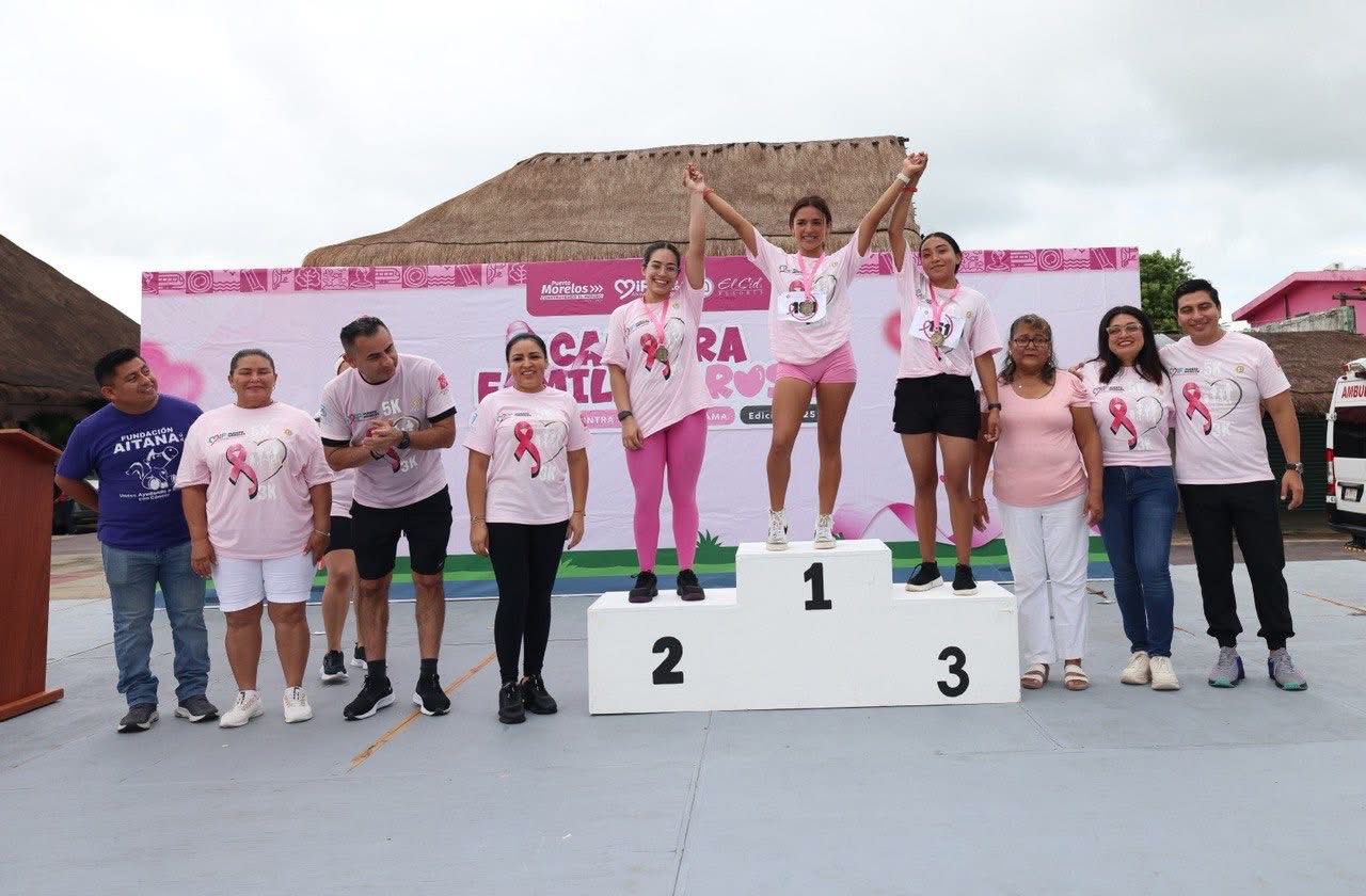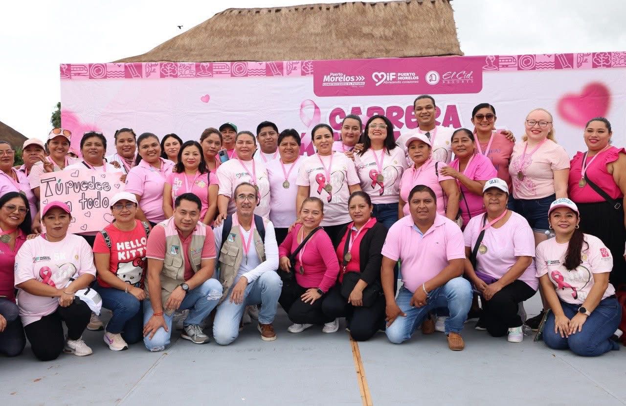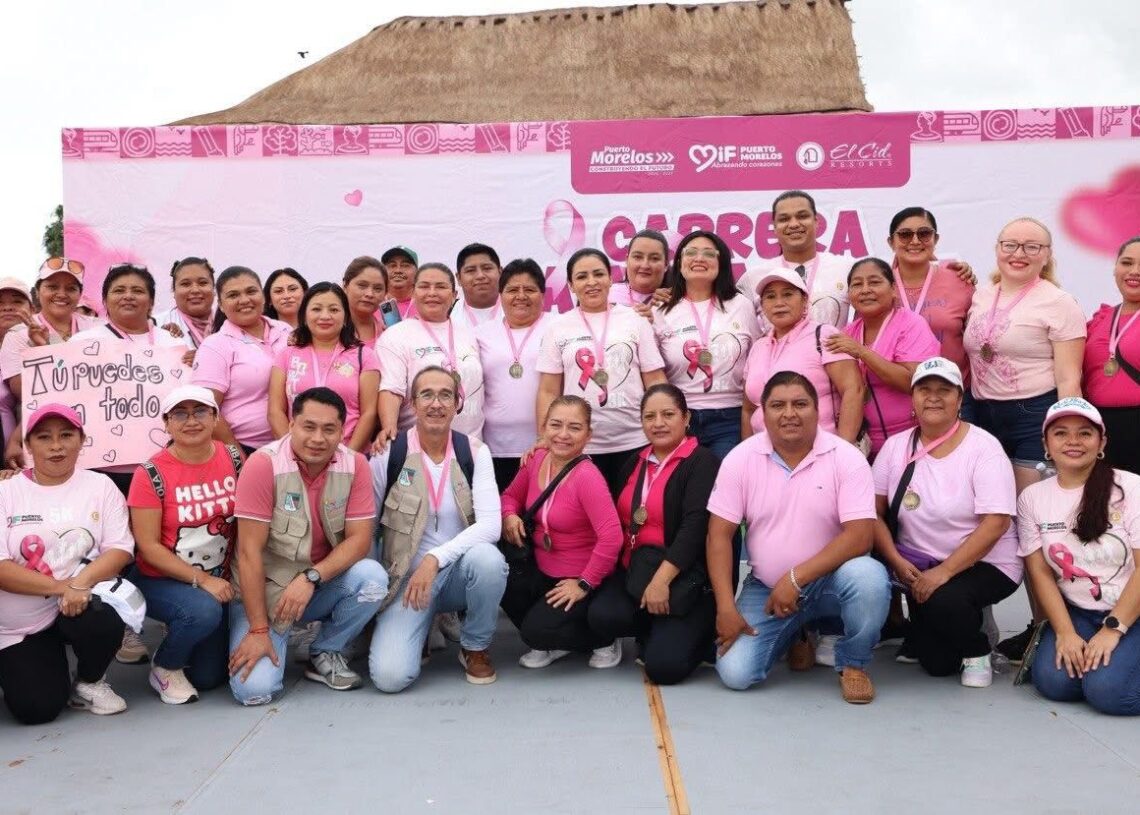 Puerto Morelos, Quintana Roo a 19 de octubre de 2025.- Con gran entusiasmo se llevó a cabo una edición más de la “Carrera Familiar Rosa 2025 – Todos contra el cáncer de mama”, organizada por el Sistema para el Desarrollo Integral de la Familia (DIF) Puerto Morelos, en coordinación con el Hotel El Cid, en la zona turística del municipio.
