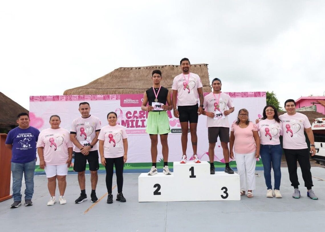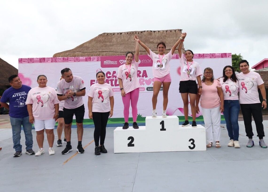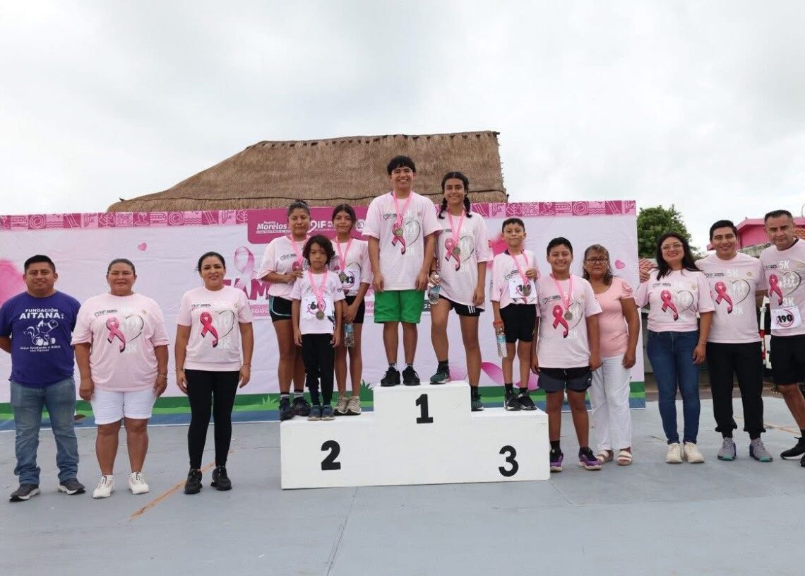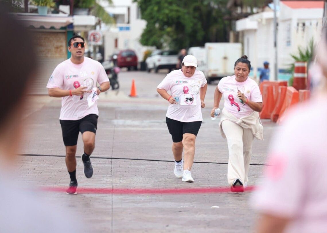 Puerto Morelos, Quintana Roo a 19 de octubre de 2025.- Con gran entusiasmo se llevó a cabo una edición más de la “Carrera Familiar Rosa 2025 – Todos contra el cáncer de mama”, organizada por el Sistema para el Desarrollo Integral de la Familia (DIF) Puerto Morelos, en coordinación con el Hotel El Cid, en la zona turística del municipio.