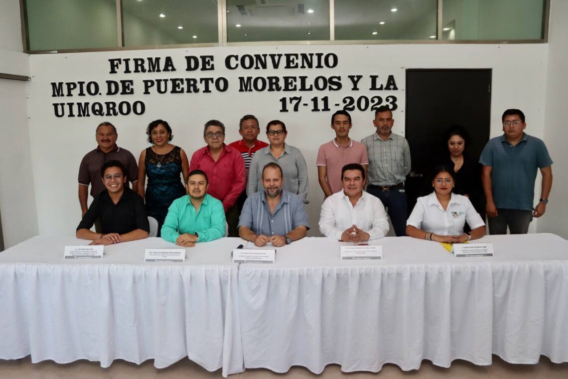 Puerto Morelos, Quintana Roo, 17 de noviembre de 2023.- Con el objetivo de contribuir al crecimiento profesional de los trabajadores del Ayuntamiento y la población en general, el gobierno de Puerto Morelos firmó hoy un convenio de colaboración con la Universidad Intercultural Maya de Quintana Roo (Uimqroo).