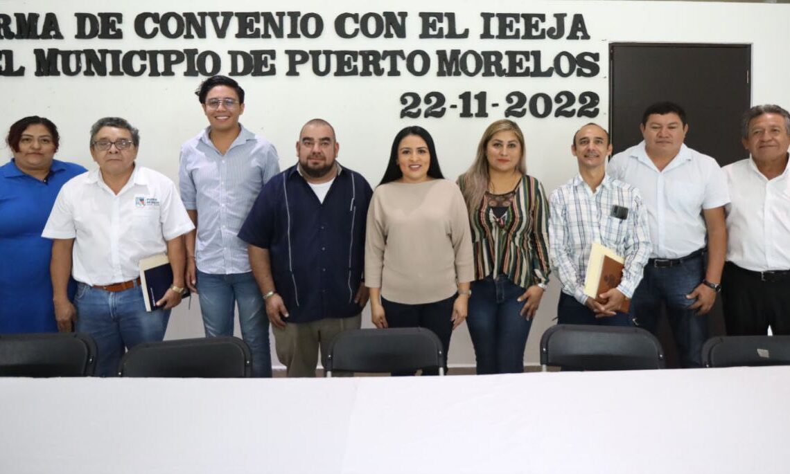 FIRMAN GOBIERNO DE PUERTO MORELOS Y EL IEEA CONVENIO PARA ABATIR EL REZAGO EDUCATIVO EN EL MUNICIPIO