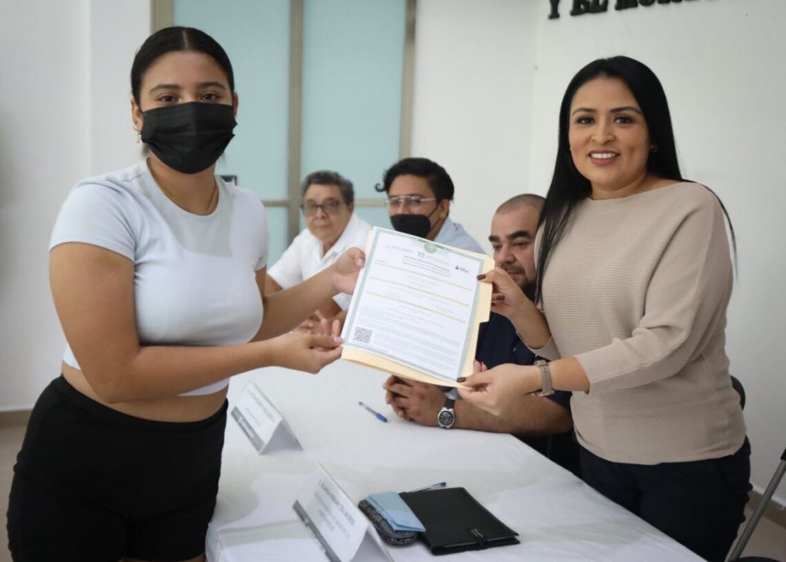 Finalmente, se hizo entrega de un reconocimiento a la joven Hiromi Nataly Canto Pacheco por concluir con su educación secundaria, a quien la presidenta municipal felicitó y pidió que corra la voz para demostrar que sí se puede vencer el reto.