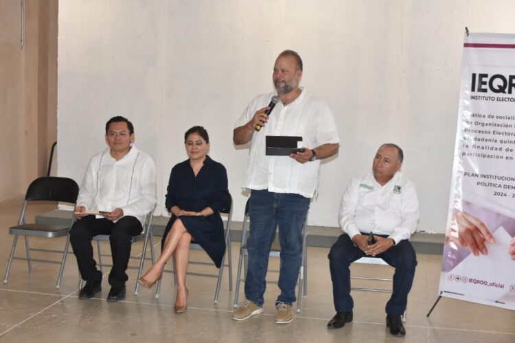 Por otra parte, en el Auditorio del Centro Cultural y Museo de Puerto Morelos, se llevó a cabo una plática sobre la organización de un proceso electoral impartida por el director de Organización Electoral Mario José Balam Santos, dirigida a la ciudanía en general en el marco del Plan Institucional de Cultura Política Democrática 2024-2025 del organismo electoral.