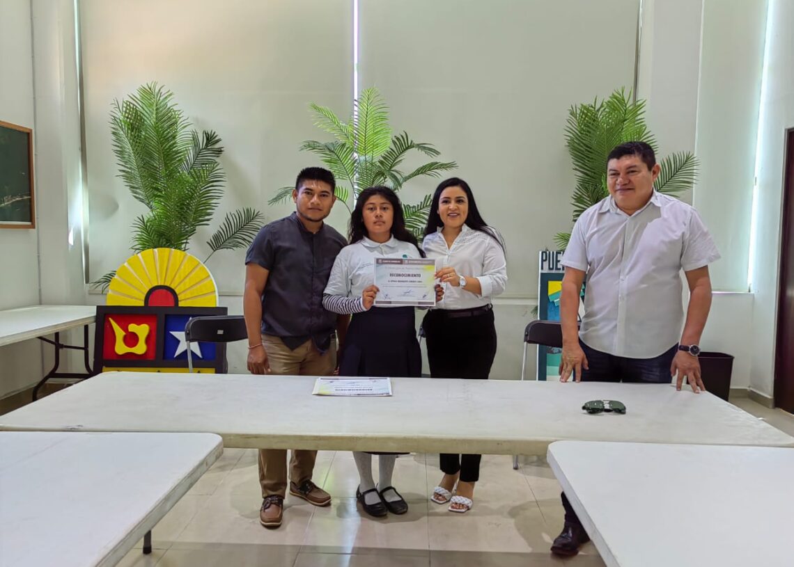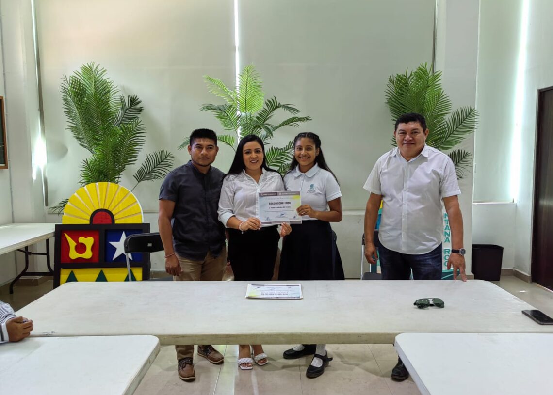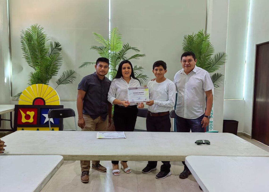 Puerto Morelos, Quintana Roo, 3 de octubre de 2022.— La presidenta municipal Blanca Merari Tziu Muñoz entregó hoy reconocimientos a cuatro jóvenes que obtuvieron su calificación en sus disciplinas deportivas y ahora competirán en la fase nacional, a quienes refrendó su apoyo para seguir su carrera deportiva.