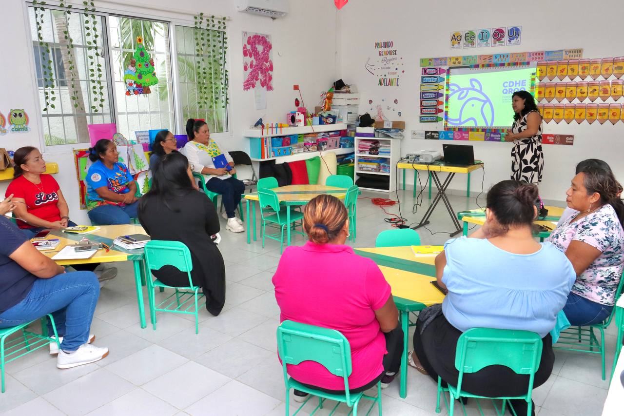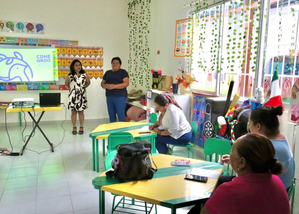 La instrucción fue impartida por Jessica Guerrero de la Comisión Estatal de Derechos Humanos de Quintana Roo (CEDHQROO), a las 10 maestras del plantel, a quienes señaló la importancia como servidores públicos de velar por la integridad de las y los niños, previniendo actos de violencia.
