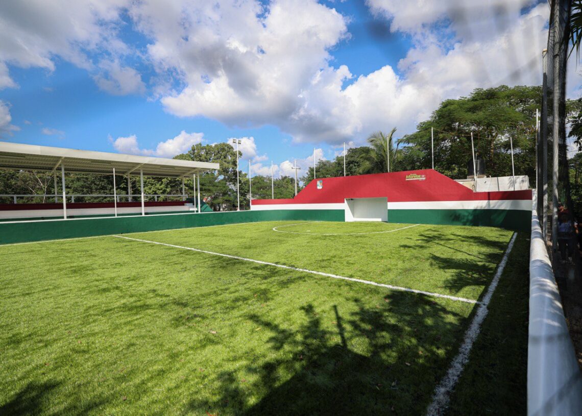 Puerto Morelos, Quintana Roo, 29 de diciembre de 2025.— El Ayuntamiento de Puerto Morelos, a través de la Secretaría de Obras Públicas, concluyó la rehabilitación integral del Campo de Futbol 7, ubicado en la zona conocida como Cementerio Viejo, en la delegación de Leona Vicario, con una inversión total de 2 millones 993 mil 522.47 pesos, IVA incluido, destinada a fortalecer la infraestructura deportiva del municipio y ampliar las opciones de espacios públicos dignos, seguros y funcionales para la comunidad.