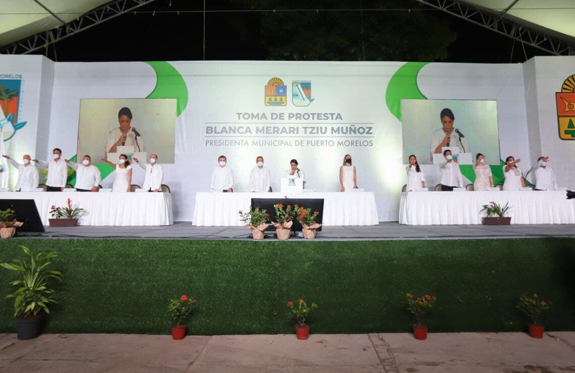Fortalecer desarrollo integral de Puerto Morelos, compromiso de Blanca Merari Tziu Muñoz, al rendir protesta como presidenta municipal