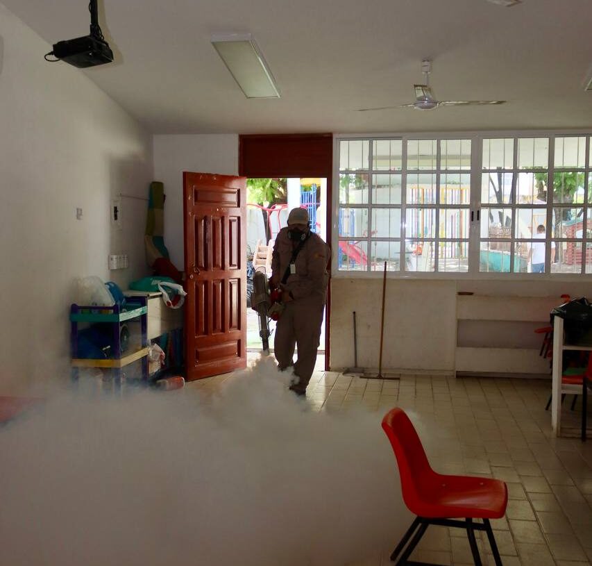 “La instrucción de nuestra Presidenta Municipal fue realizar las gestiones necesarias, para que todos los planteles educativos del municipio se fumiguen previo al regreso a clases, ya que eso significará proteger la salud de las y los estudiantes, y con ello dar tranquilidad a los padres de familia”, explicó.