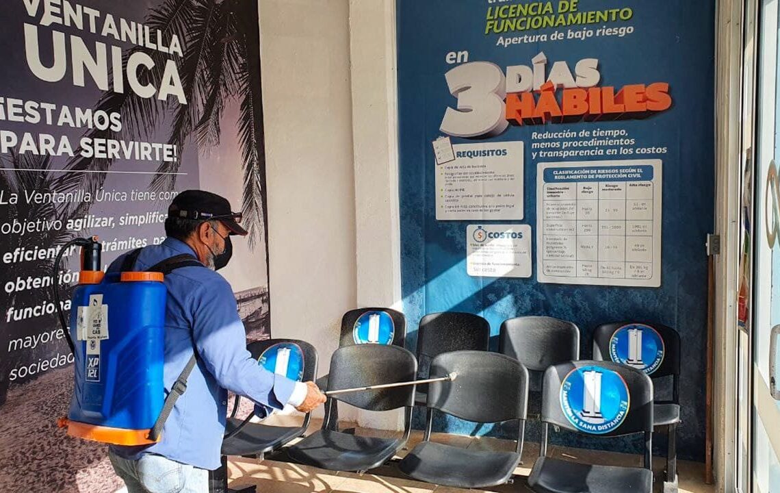 En este contexto, la funcionaria explicó que diariamente se lleva a cabo la desinfección de las oficinas municipales, con el objetivo de proteger a los trabajadores del ayuntamiento y a la población que acude a realizar algún trámite, como es el caso de la Tesorería, la Ventanilla Única, Desarrollo Urbano, Registro Civil y Tránsito.
