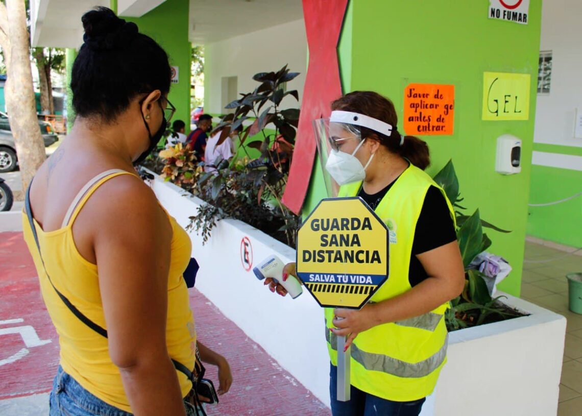 Puerto Morelos, Quintana Roo, 10 de enero de 2021.- Con el objetivo de hacer frente a la ola de contagios de Covid-19 que se registra en la entidad, el gobierno de Puerto Morelos reforzó los protocolos sanitarios en todas las dependencias de la administración local, con especial énfasis en las que brindan atención a la ciudadanía, informó la secretaria municipal de Desarrollo Social, Juanita Chacón Canché.