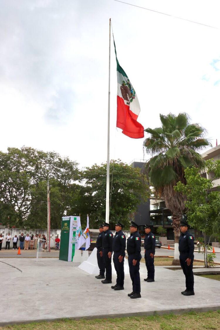 En este acto, luego de llevar a cabo el protocolo de ordenanza y entonar los Himnos Nacional Mexicano y de Quintana Roo, la alcaldesa recordó los momentos históricos que han marcado los colores de la bandera en defensa de la soberanía nacional, verde, blanco y rojo, significado de esperanza, unidad y la sangre derramada por las heroínas y héroes nacionales, sumando a ellos, dijo, honor, lealtad, lucha, sacrificio y profundo amor por la patria.