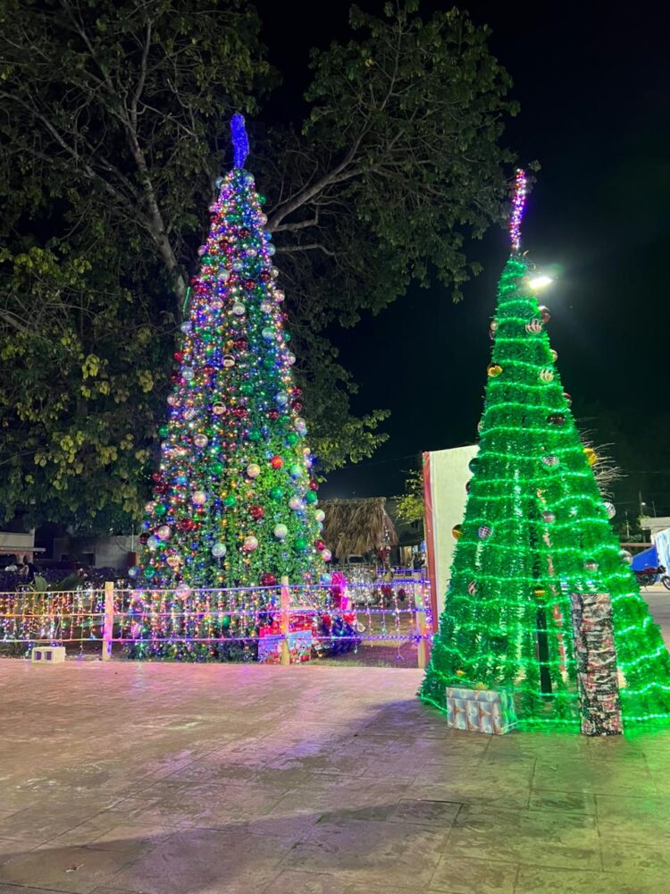 Puerto Morelos, Quintana Roo, 2 de diciembre de 2025.– La presidenta municipal Blanca Merari Tziu Muñoz cumplió con la tradición al activar los switches para iluminar el Palacio Municipal y el árbol navideño instalado en el parque de la colonia Zetina Gasca.