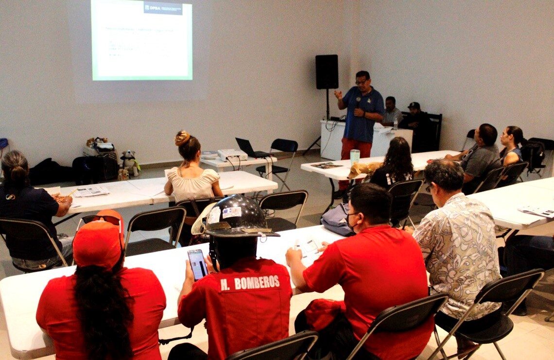 Al curso, que se impartió en el Salón de Cabildos José María Morelos del Palacio Municipal, acudieron elementos de Seguridad Pública, Bomberos y Protección Civil.